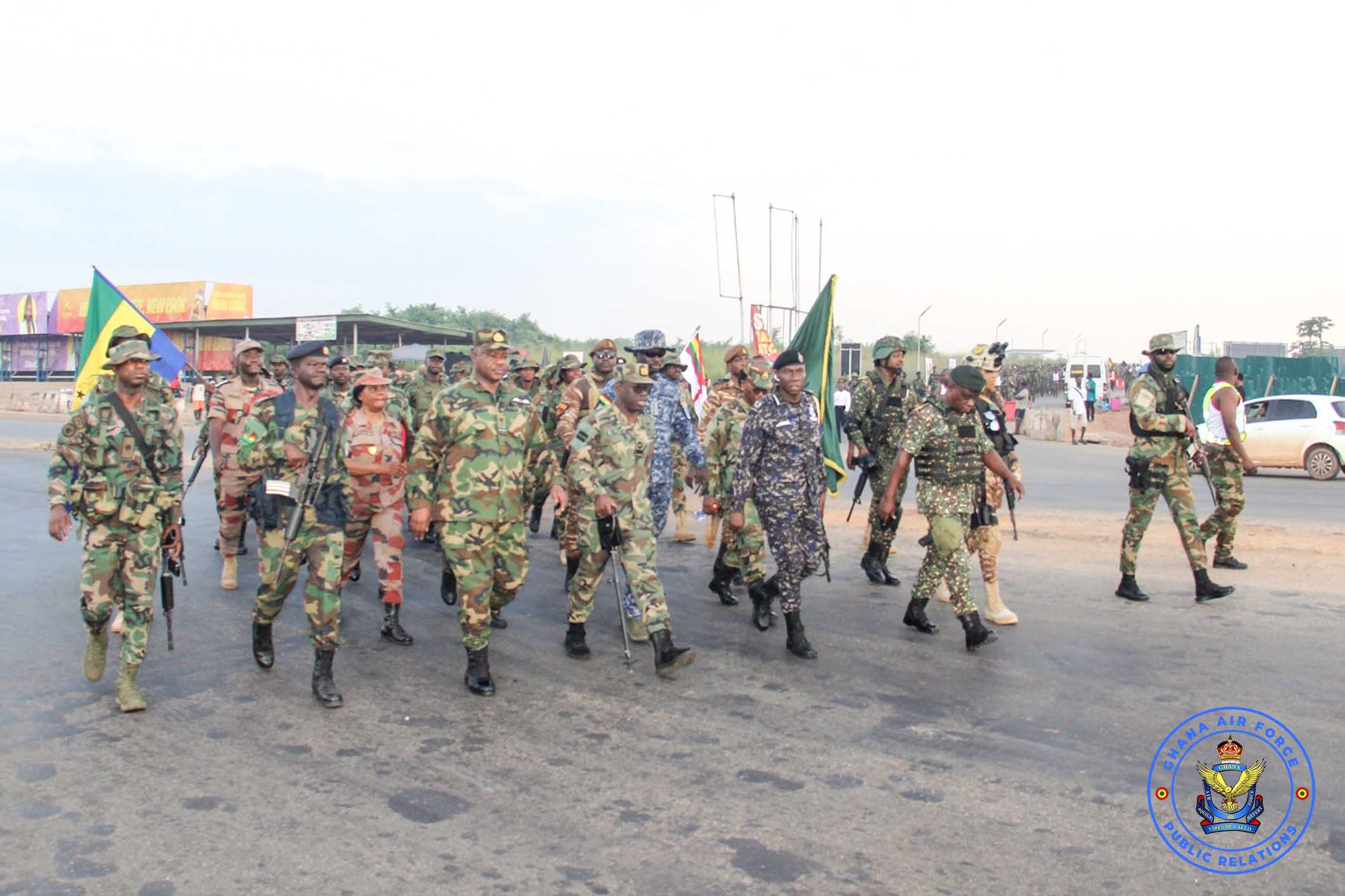 The 2 Garrison of the Ghana Armed Forces (GAF), in collaboration with sister security services, undertook a regional security services route march on Tuesday, 23 December 2025, in Takoradi.