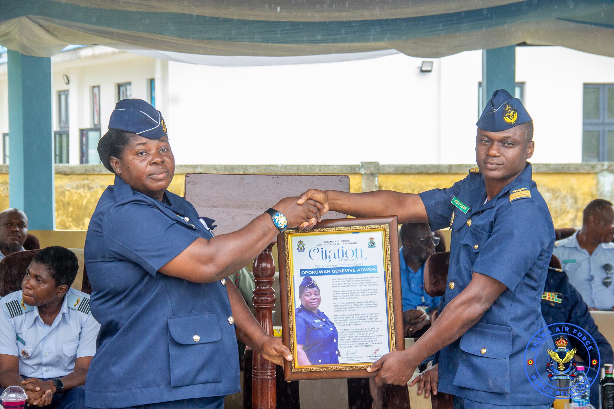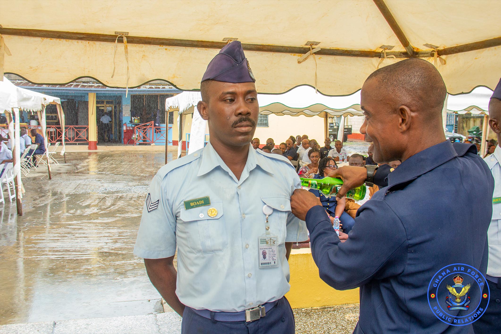 The Base Commander, Air Commodore Eric Yirenkyi, congratulated all the elevated Warrant Officers and Senior Non-Commissioned Officers, reminding them of the higher standards of discipline, integrity and professionalism expected of their new ranks. He urged them to maintain discipline, mentor and train younger soldiers and serve with pride and honour.
