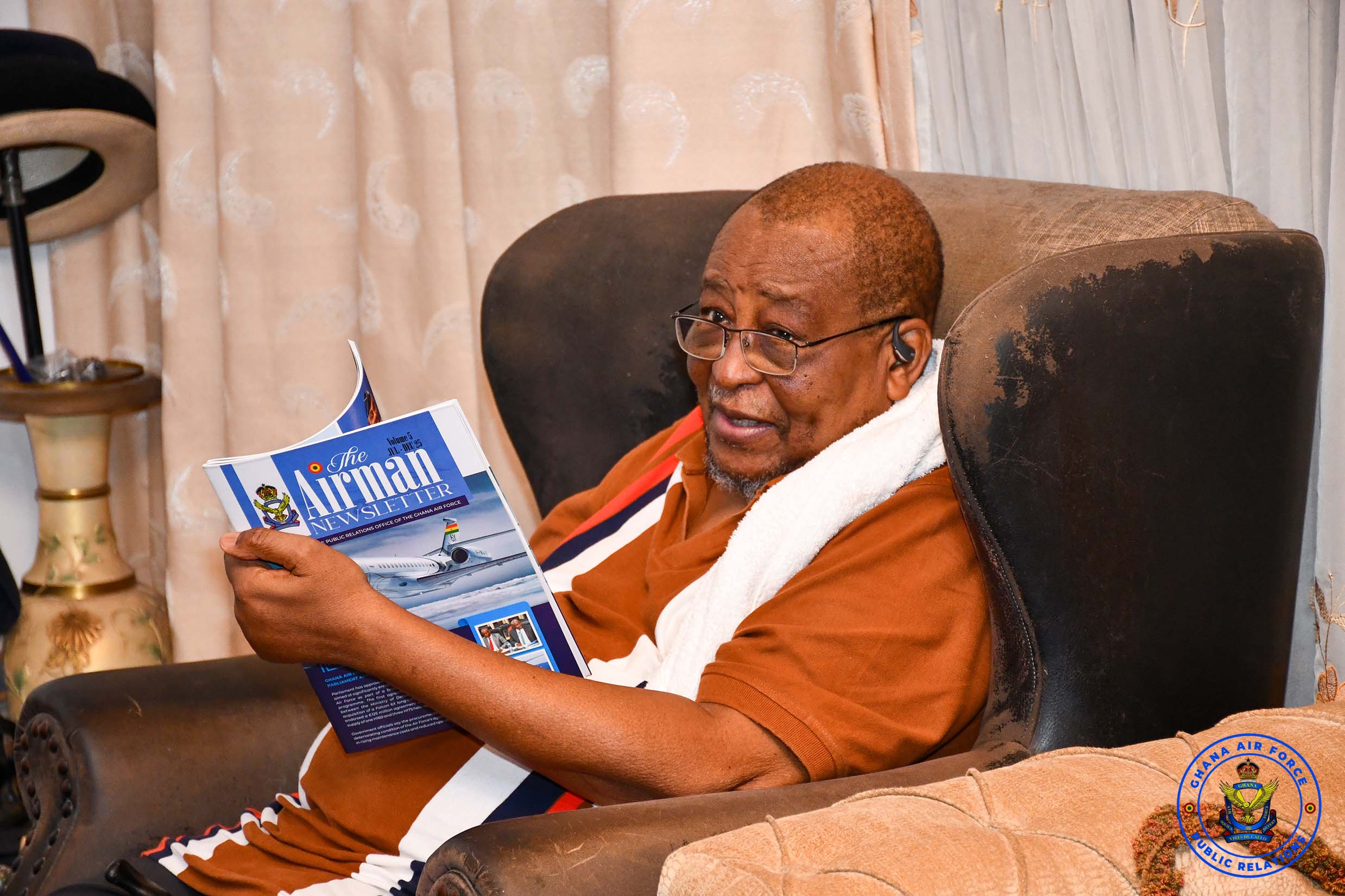 The visit, which marks the third in the series and forms part of activities commemorating Ghana Month, was aimed at checking on his well-being and recognising his immense contributions to the growth of the Ghana Air Force and national security.