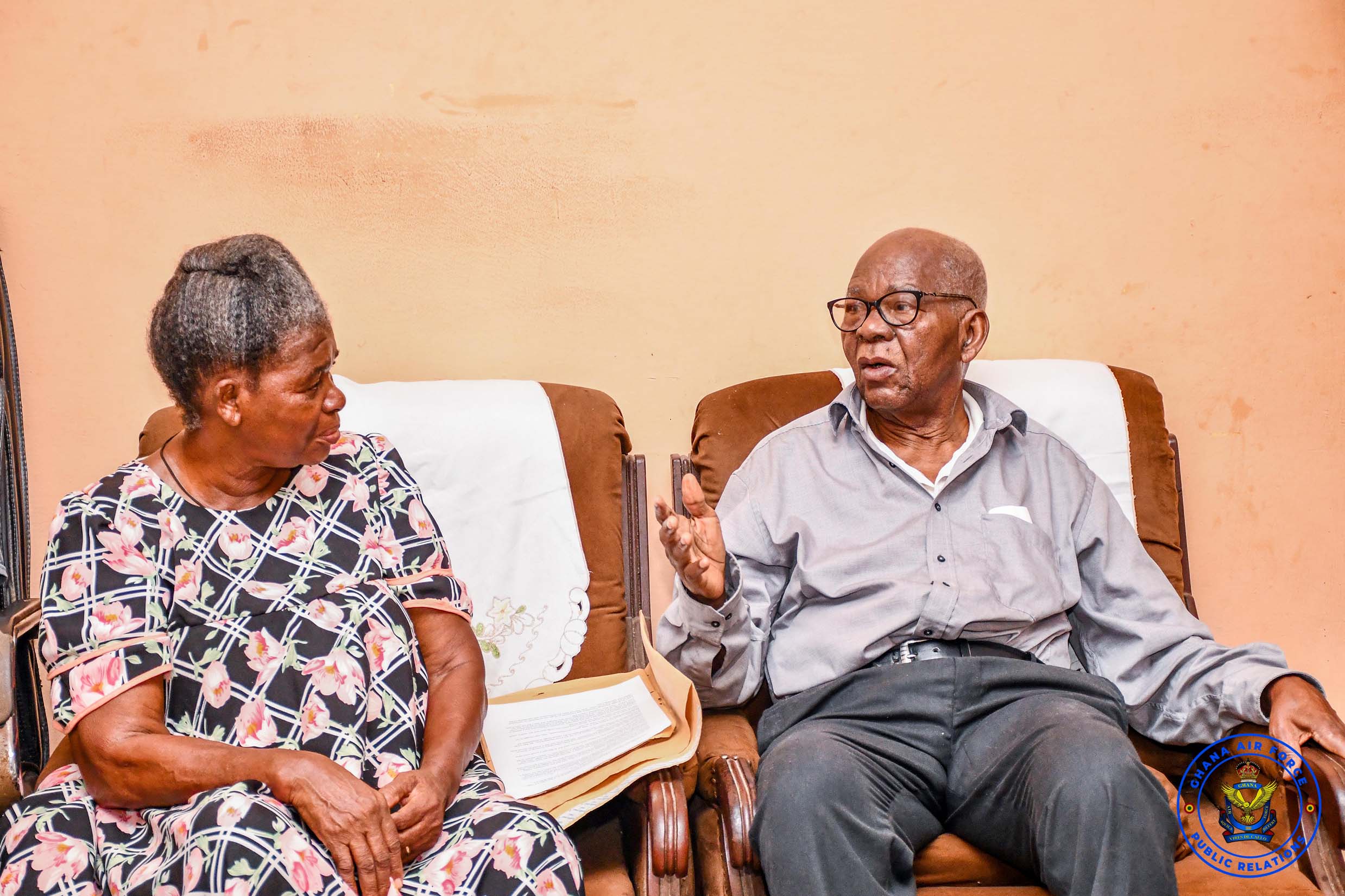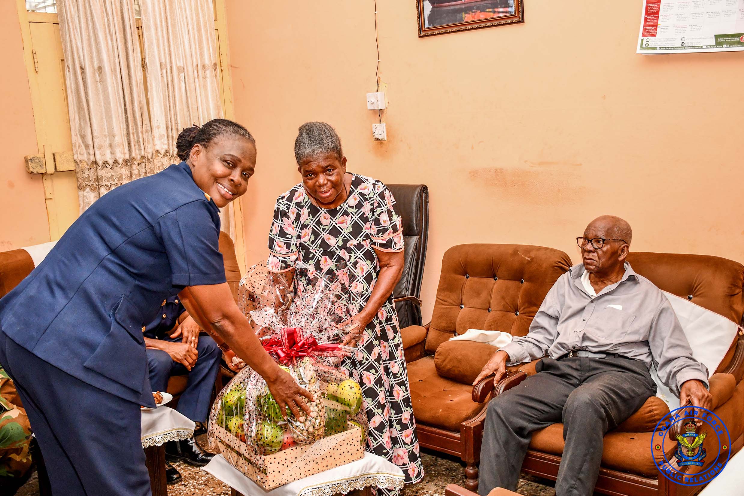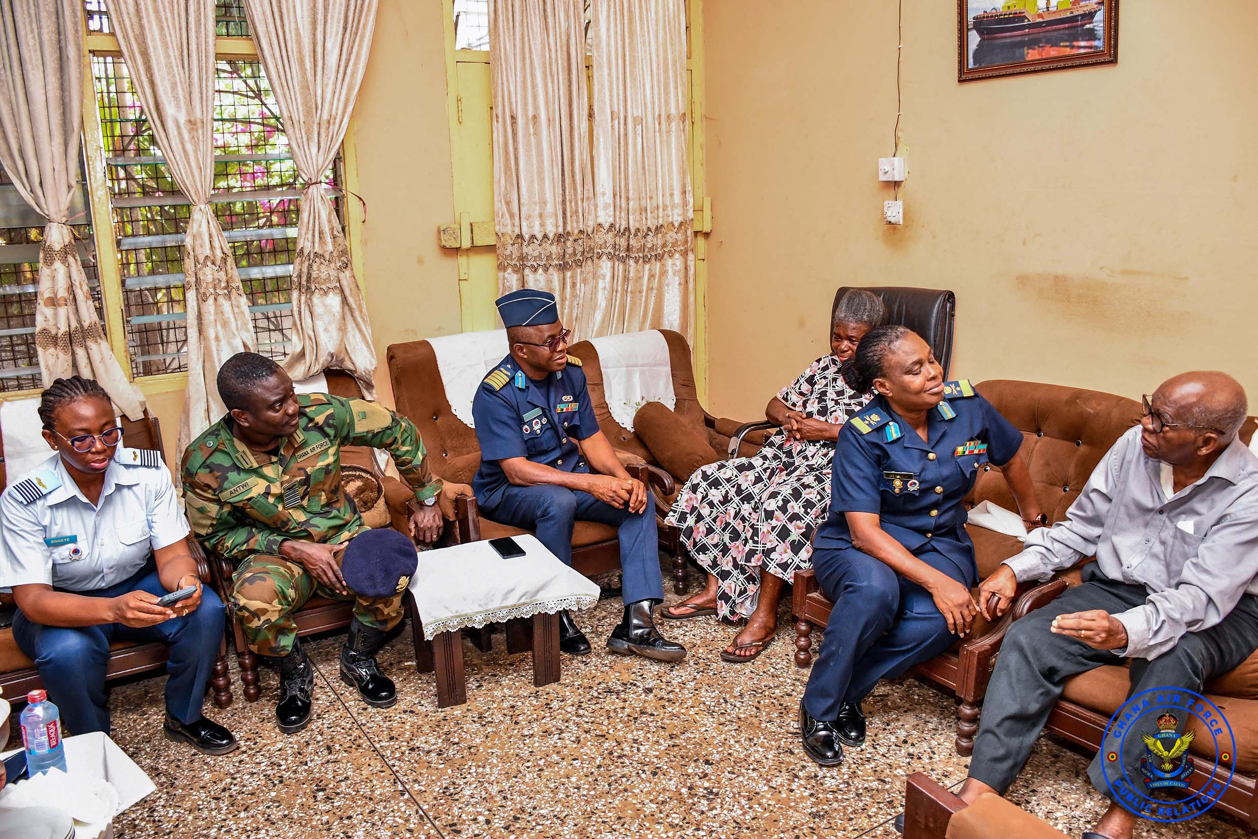 In continuation of the exercise, the delegation led by the Deputy Chief Staff Officer (Administration), Air Commodore Sophia Adzo Jiagge, paid a visit to Group Captain Edward A A Awuviri (Rtd), at his residence on Friday, 13 March 2026.
