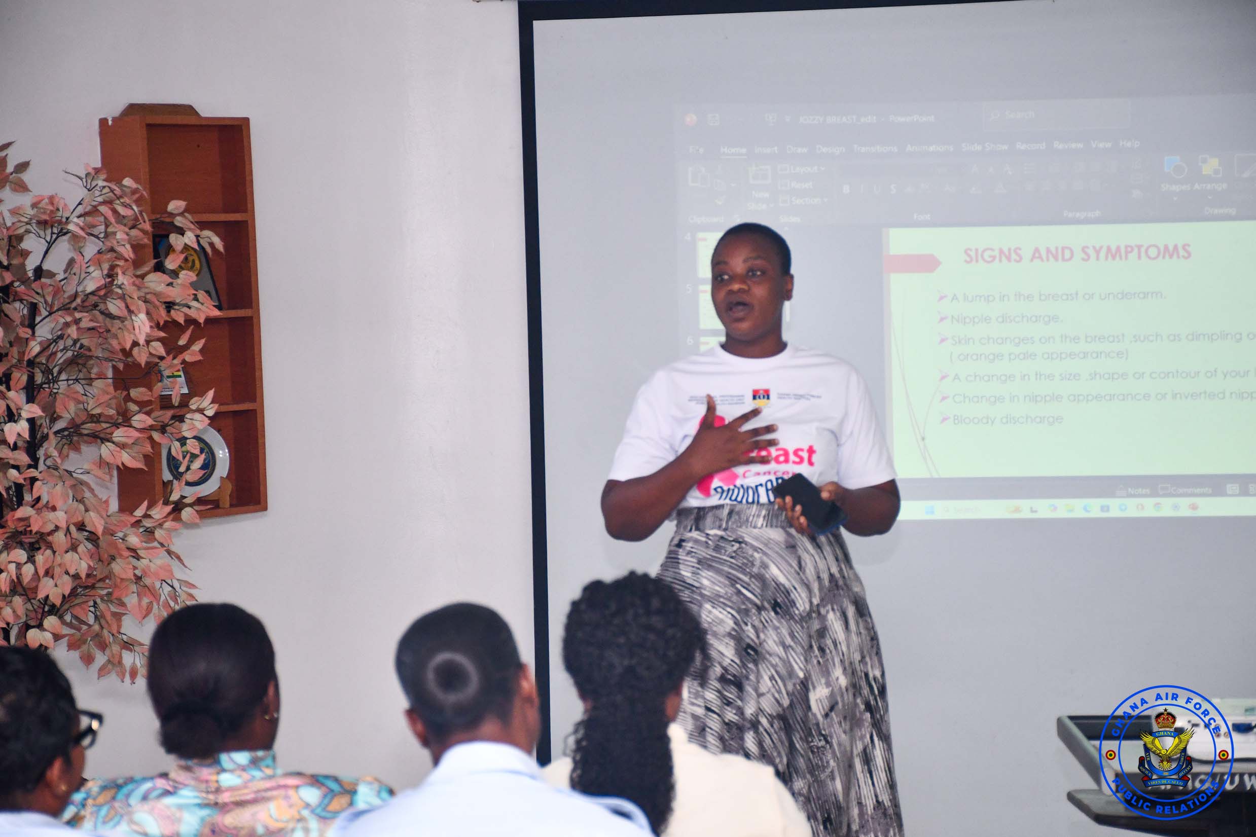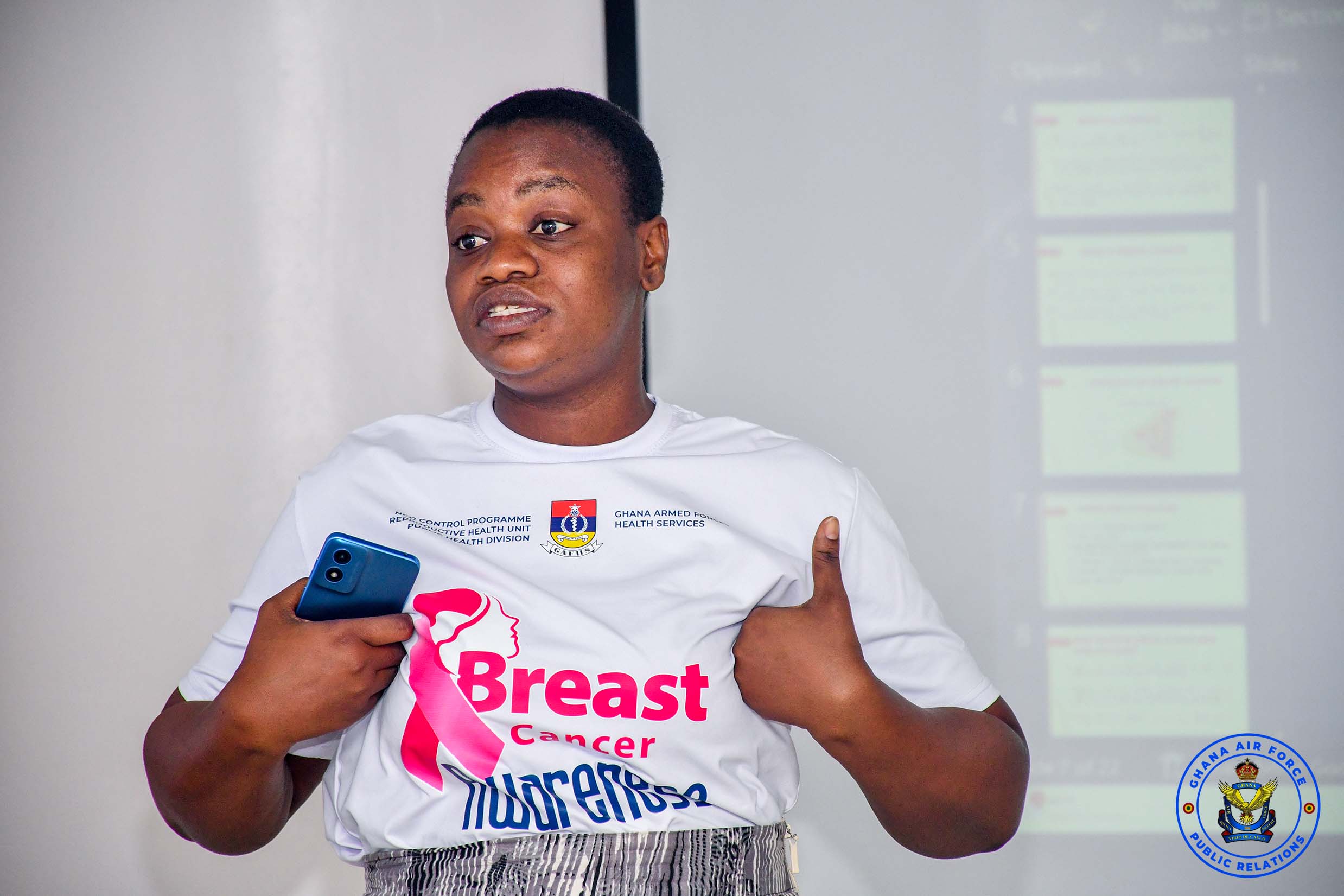 As part of this year’s Breast Cancer Awareness Campaign, a team from the Public Health Division, 37 Military Hospital, visited the Air Force Headquarters (AFHQ) on Thursday, 16 October 2025, to deliver a health talk and conduct breast screening for personnel.