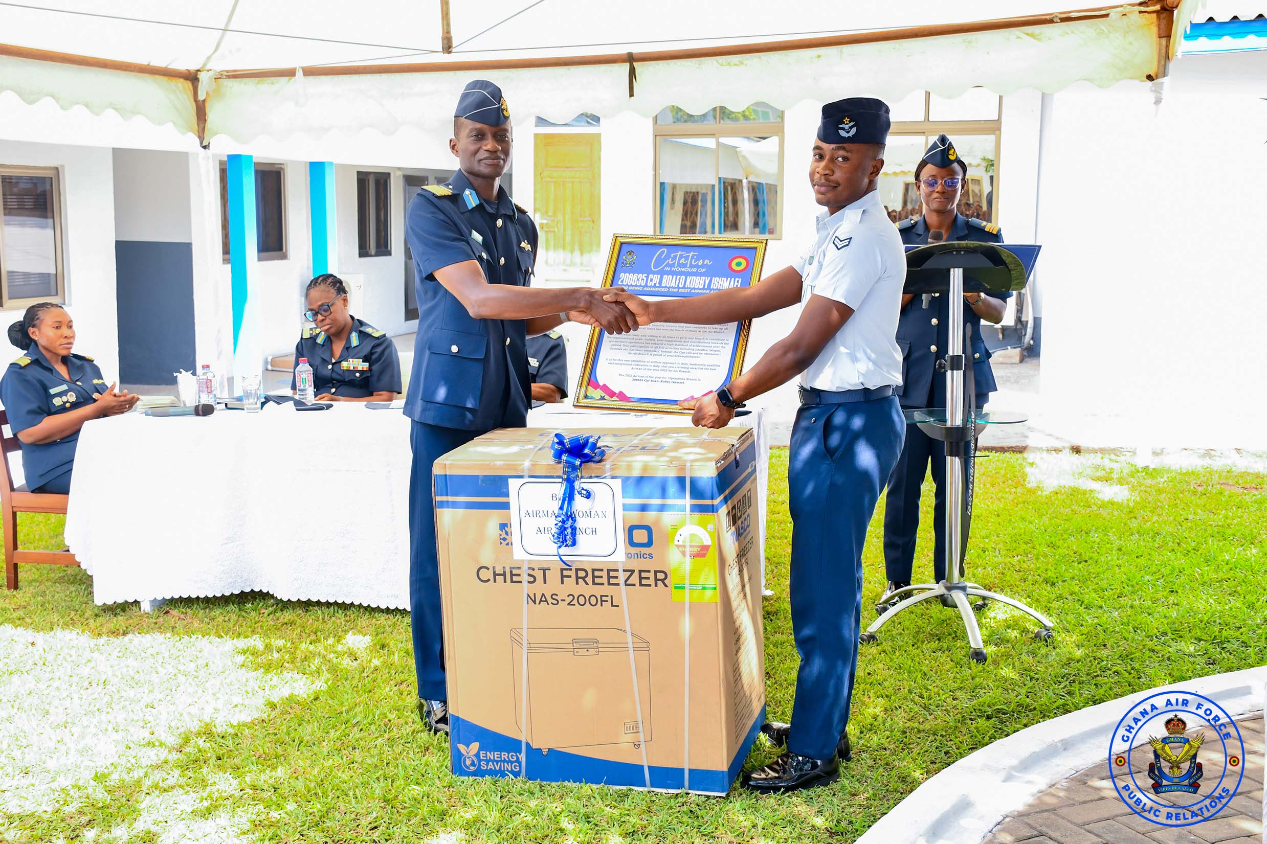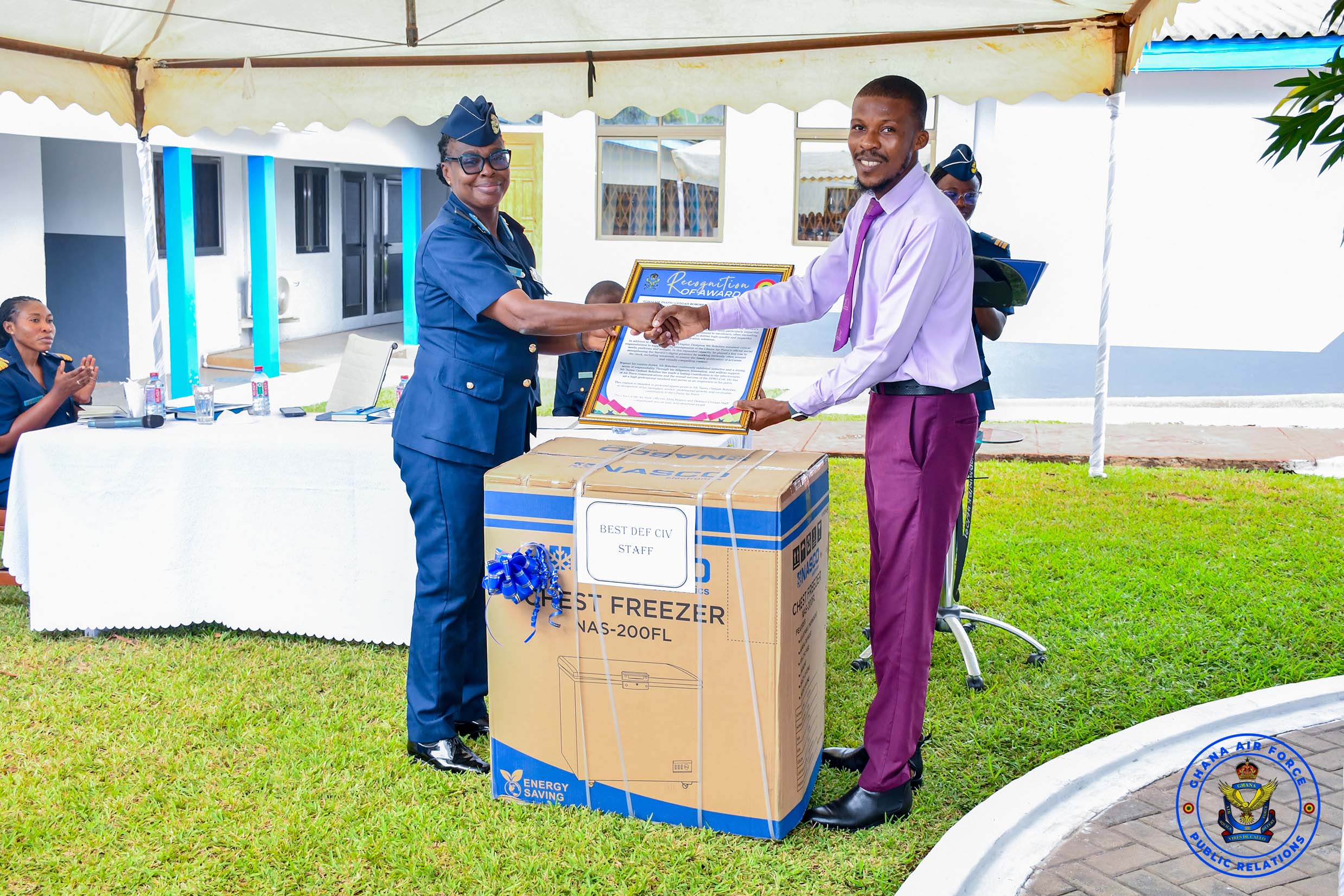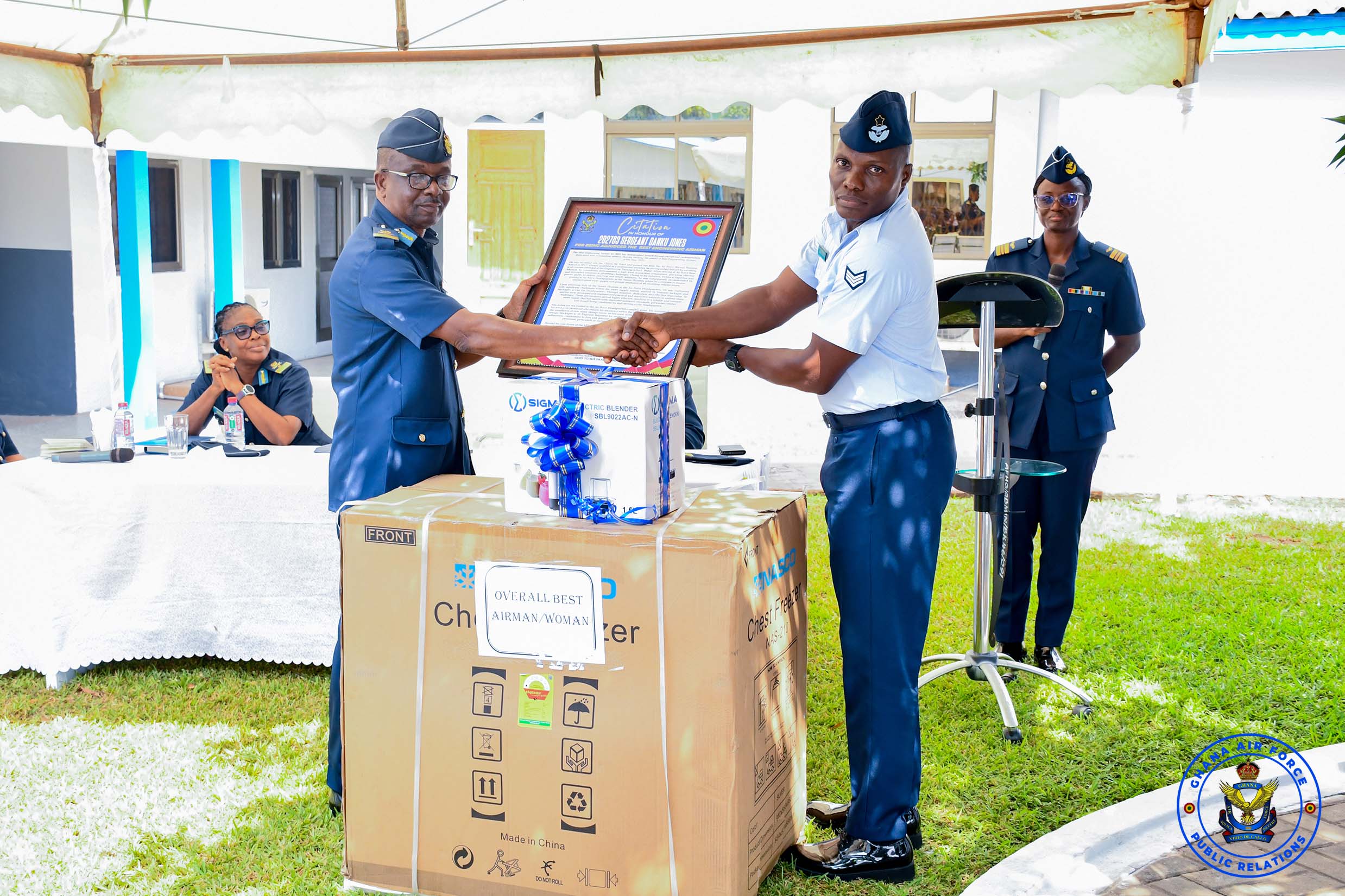Sergeant Danku Jones emerged as the Overall Best Airman of the Year and the Best Personnel in the Engineering Wing, receiving a deep freezer, a citation, and a Melcom shopping voucher. Warrant Officer Class I Djimateye Monica was adjudged the Best Supply Personnel, Corporal Boafo Ishmael won the Best Air Operations Personnel award, while Leading Aircraftwoman Baah Abigail was named the Best Personnel in the Administration Branch. Mr Tsatsu Gedzah Bobobee of the Service Public Relations Office received the Best Defence Civilian Staff award of the year.