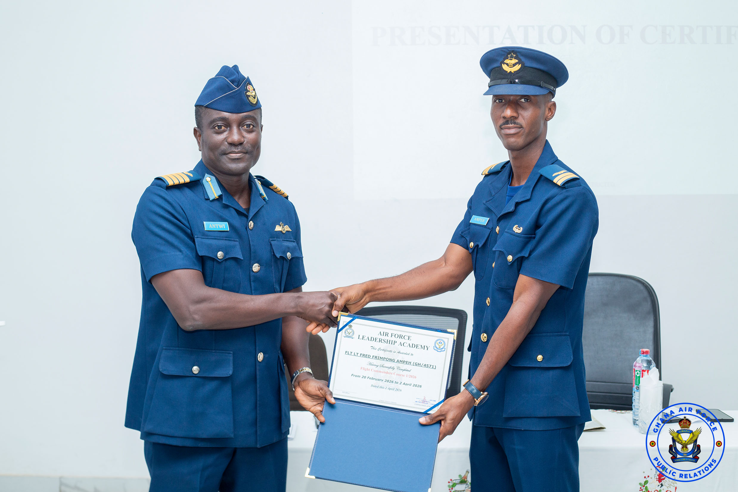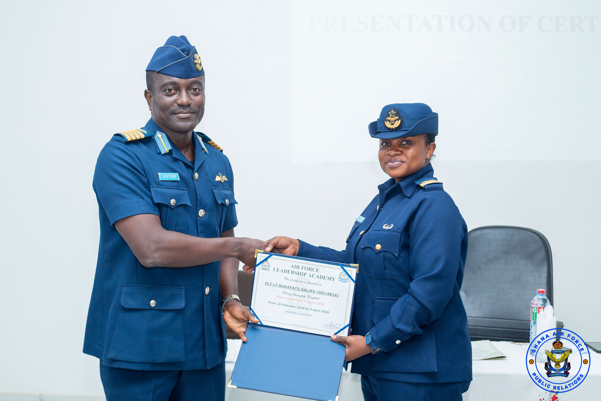 The Ghana Air Force has successfully concluded Flight Commander’s Course 1/2026 at the Ghana Air Force Aviation College (GHAFAC) on Thursday, 2 April 2026, marking an important step in the development of future leaders within the Service.