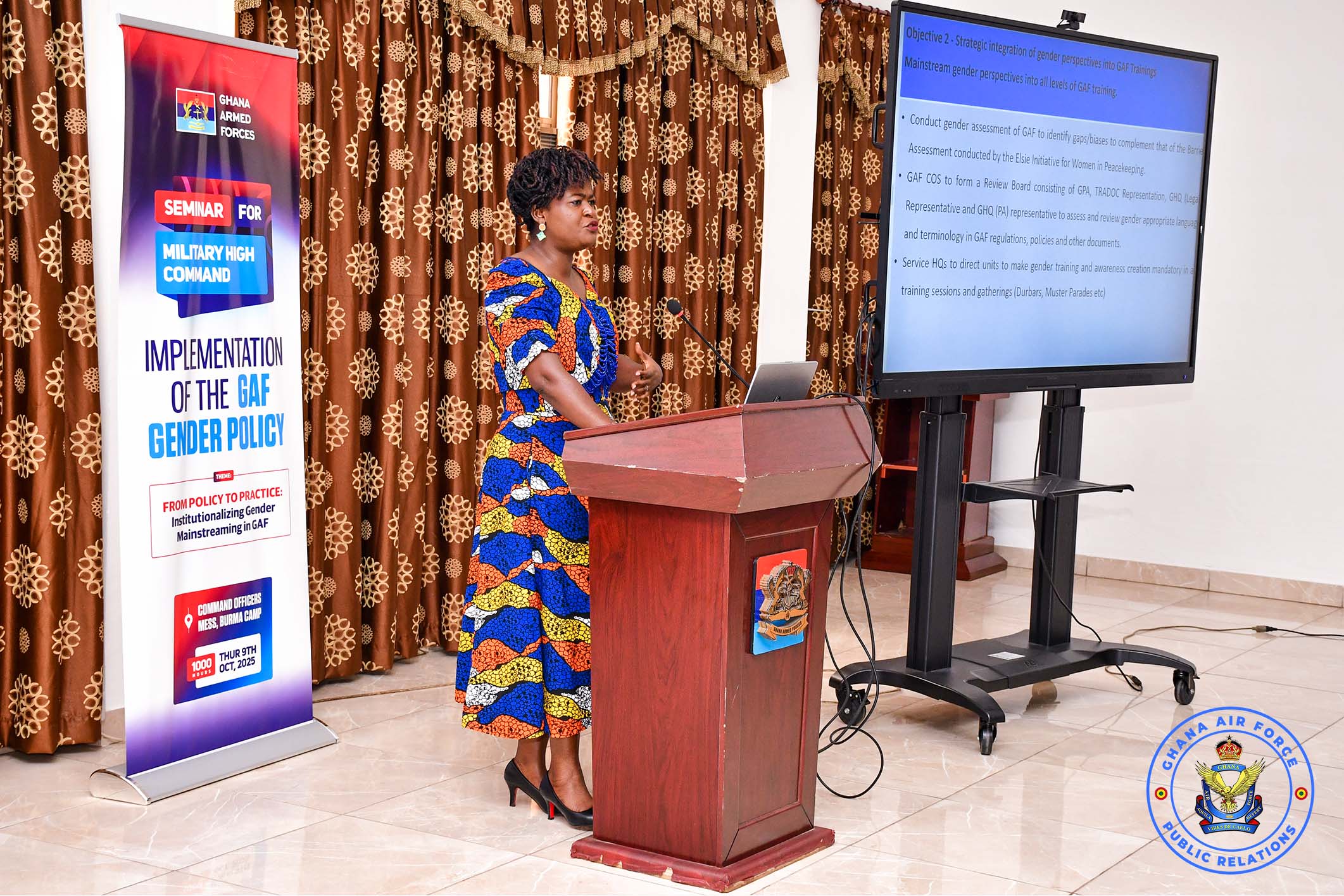 A high-level seminar on the implementation of the Ghana Armed Forces Gender Policy was held at Burma Camp on Thursday, 9 October 2025. Centred on the theme, ‘From Policy to Practice’, the event aimed to institutionalise gender mainstreaming in the Ghana Armed Forces.