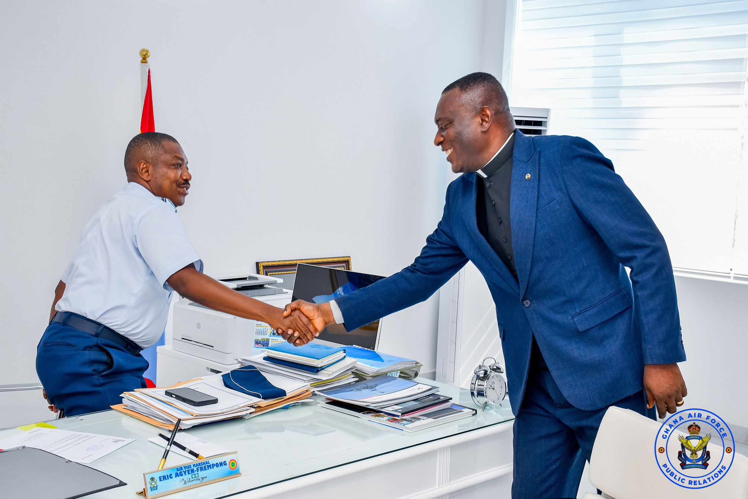 The Ghana Armed Forces Clergy, led by the Director General of Religious Affairs, Brigadier General Benjamin Godson Kumi-Woode, paid a courtesy call on the Chief of the Air Staff, Air Vice Marshal Eric Agyen- Frempong, on Tuesday, 6 January 2026, at the Air Force Headquarters.